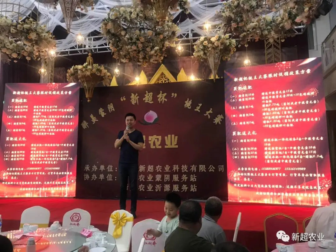 2019年8月10日,第二届醉美蒙阴“新超杯”桃王大赛在风景秀丽的山东省蒙阴县隆重举行!此次赛桃会是在当地老百姓的强烈呼吁下举办!去年会议上大家分享了施用新超肥料的心得体会,对新超公司也有了更深入的了解,大家十分期待今年能够继续带着桃子前来参赛,争取桃王的荣誉。新超肥料在蒙阴县推广十多年,拥有忠实深厚的群众基础,在当地有口皆碑,深受广大桃农的青睐,新超优质菌肥使老百姓的桃子品质和产量越来越好,老百姓对新超肥料的信任也越来越深。为响应大家的呼吁并感谢多年以来蒙阴桃农的支持与信赖,新超公司与当地服务站共同举办了第二届桃王大赛!